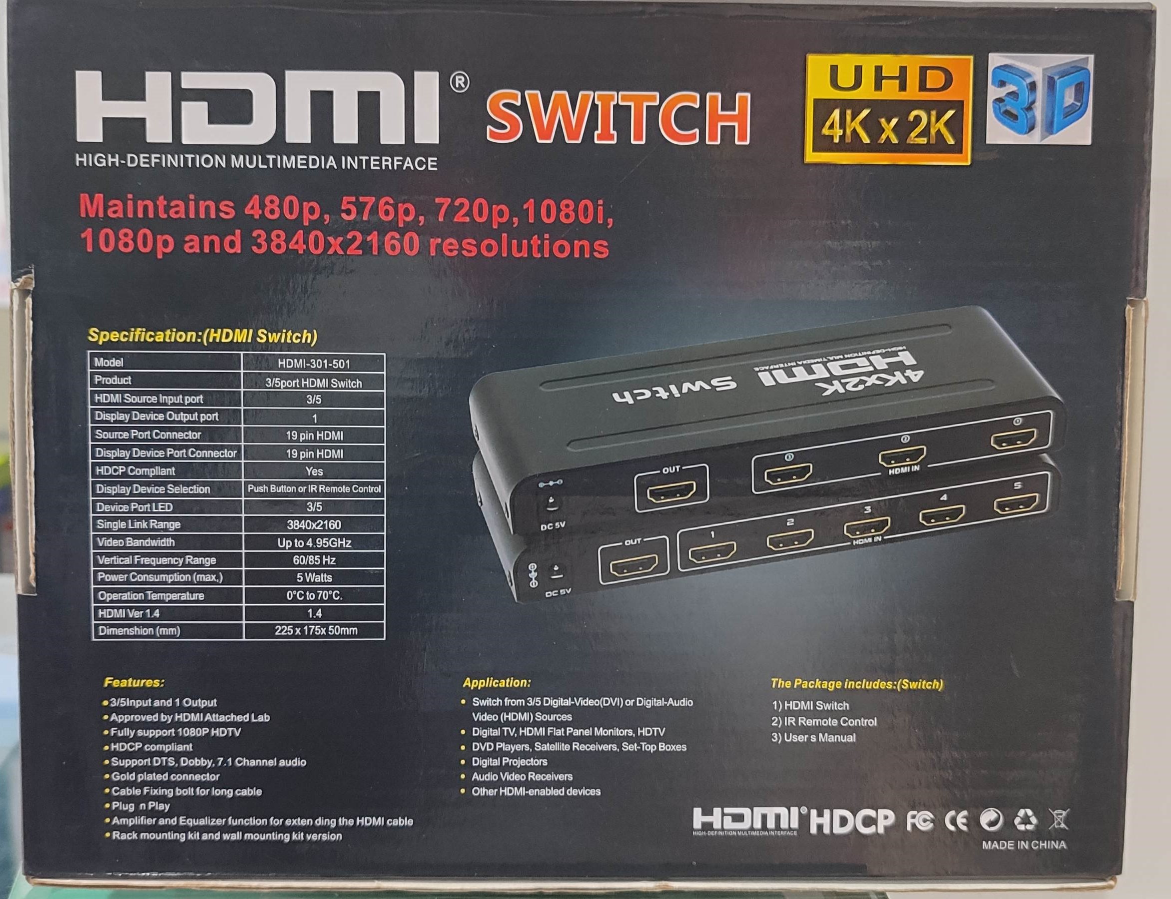 1×3 HDMI Splitter is an HD audio and video distributor that connects the HDMI signal source to the input of the splitter and allows one HDMI input port to allocate eight HDMI output ports.