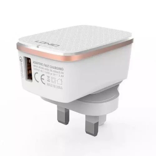 LDNIO 2.4A White Color Single Output QC2.0 Fast Charging USB Port Travel Charger with Microdata device